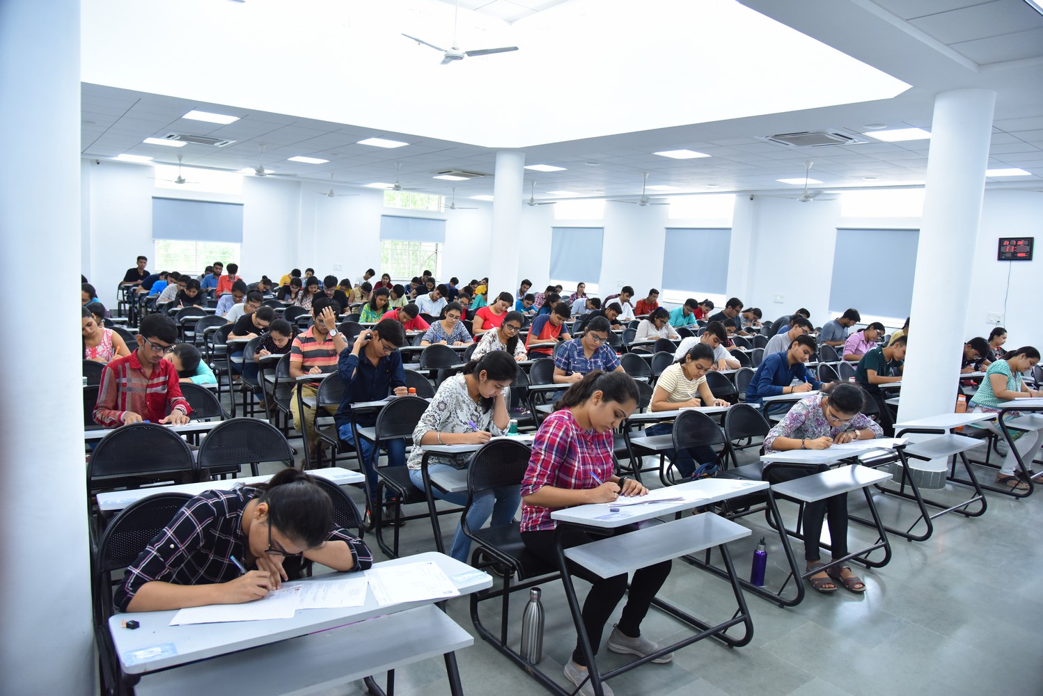 The centrally air-conditioned A. P. & P. S. Patel Examination Centre offers a calm, spacious, and student as well as disable-friendly environment designed to support focused and stress-free examinations. The hall is well-lit and ergonomically arranged, providing comfortable seating and adequate spacing to ensure convenience during long exam hours. With a total seating capacity of 500 students, the centre efficiently accommodates large batches while maintaining discipline and order. Continuous CCTV surveillance enhances security, transparency, and fairness throughout the examination process. The peaceful ambiance, proper ventilation, and organized infrastructure help students concentrate better and perform to their full potential with confidence.